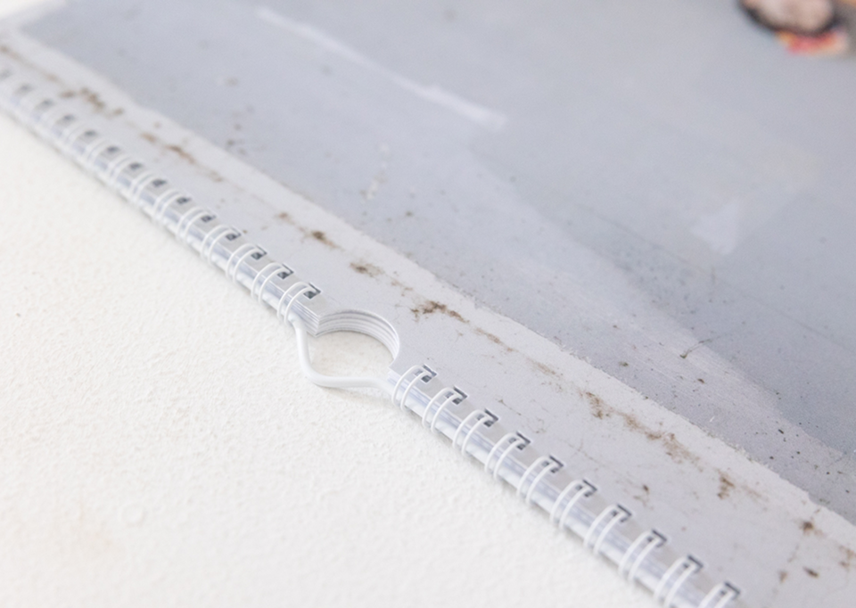 片面印刷13ページがリングで綴じられている、壁掛けができるブックです。